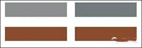 色差又稱(chēng)色像差,是透鏡成像的一個(gè)嚴(yán)重缺陷,簡(jiǎn)單來(lái)說(shuō)就是顏色的差別(如圖1所示),GB 5237.4中要求粉末噴涂型材色差不大于1.5。在鋁型材靜電粉末涂裝中,涂膜產(chǎn)生色差的原因主要有粉末涂料和粉末涂裝工藝控制兩方面。