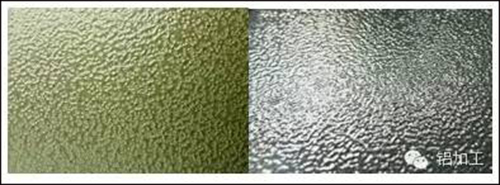 (2)涂膜太薄,流平受阻不能很好展開(kāi),此時(shí)能看到型材基體紋理;涂膜超厚,涂膜表面呈斑紋狀桔皮;