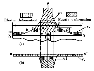 圖中下部剖面線區(qū)域?yàn)樗苄岳靺^(qū)。圖中所描述的板上堆焊模型只適于描述堆焊耐磨層等場(chǎng)合。